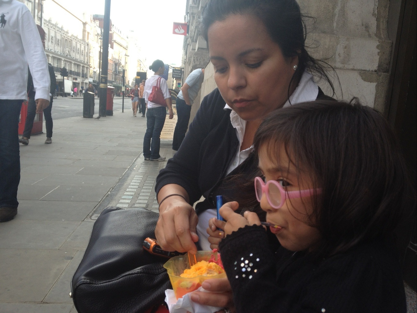 Best laid plans… We set out to see Tower of London and crown jewels. Cab drives said ‘pick somewhere else’. He later explained the Olympic bicycle road race had the streets blocked. He saw Natalie and suggested a “tee oh why” store. He took us to Hamley’s. Natalie spent an hour playing with toys on all seven stories of the store. She was interviewed for TV news in Spain. Later we walked and shopped and walked and walked. Tomorrow we attend Olympic Women’s gymnastics!